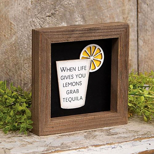 Bring a little spring and summer indoors or to your outdoor living areas! White painted wooden frame and background with a color lemon-themed fruit graphic and dark gray text. Includes a small stand on the back for tabletop or countertop display or use a sawtooth hanger on the back for installing to any flat, vertical surface. Greenery shown not included.