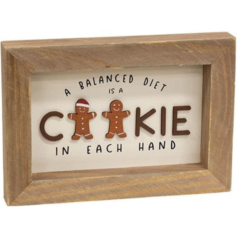 Cookies are a year-round staple in healthy dieting, right? This fun and festive sign isn't just for Christmastime. It reminds us that the little simple things in life are to be enjoyed all year-round. A chunky, all natural wooden holds two colorful wooden gingerbread men accents with simple brown lettering. Designed to be placed on a flat surface free-standing or hung on any vertical wall using the sawtooth hanger on the back.