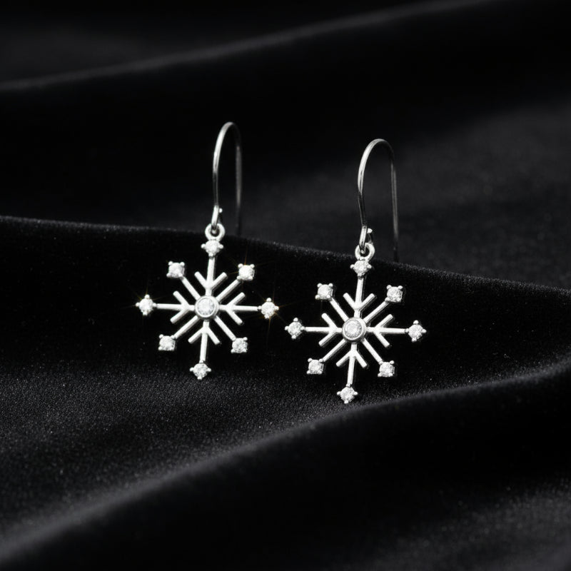 A classic for the Christmas season and a must for winter. Rhodium plated for no tarnish care featuring 18mm drops with eight 2mm CZs and one 3mm bezel set center CZ. Hanging length is approximately 34mm (1.25") long. French wires on swivels for maximum movement and sparkle. .925 Sterling Silver.