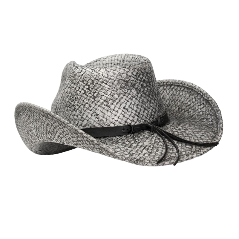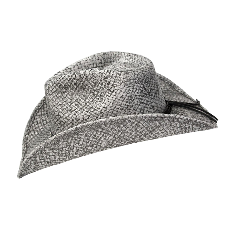 Gray Snakeskin Look Straw Pinch Front Western Hat