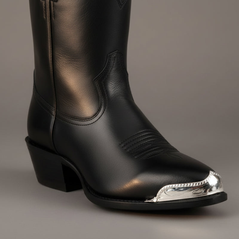 Silver plated rope patterned edge with delicate swirls and zig zags. Protects your cowboy boot from scuffs, dirt, and damage and adds a stylish patriotic western flair to any attire. These are form-fitting to fit most standard width J Toe or J Snip Toe styles. Sold only as a set of two. See all our engraved toe tips and heel guards.