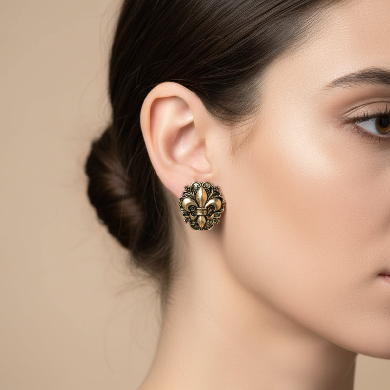 Western Fleur-de-Lis Antique Stud Earrings