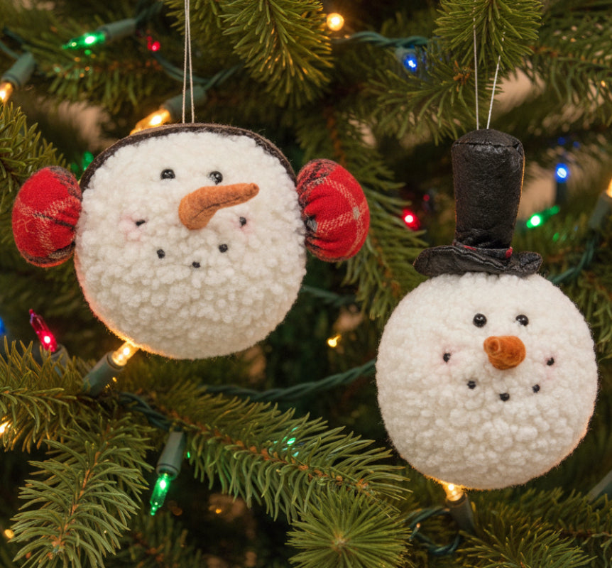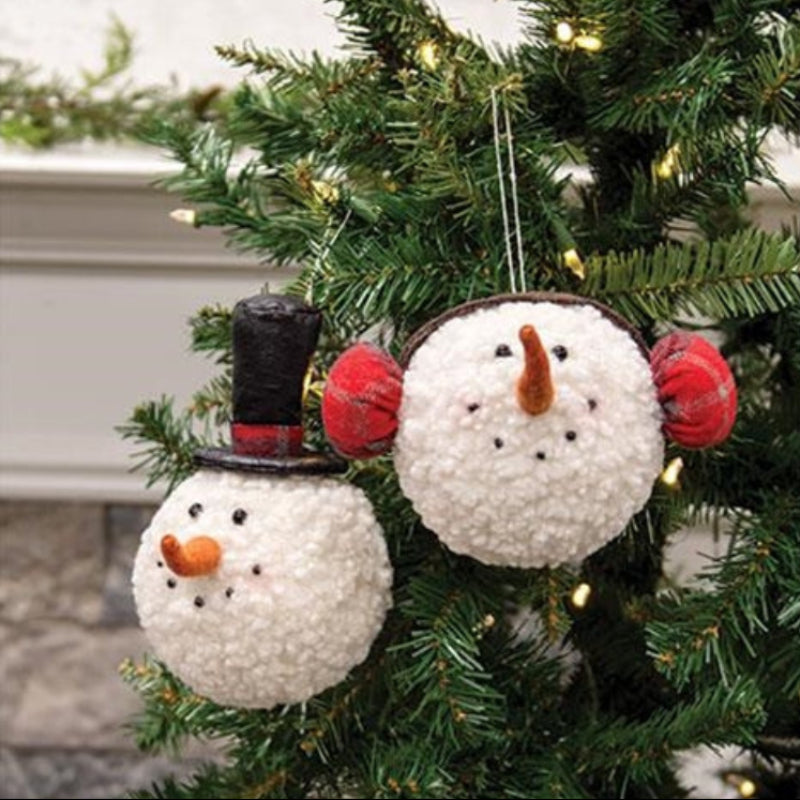 Winter Snowman Head Ornaments Set of 2