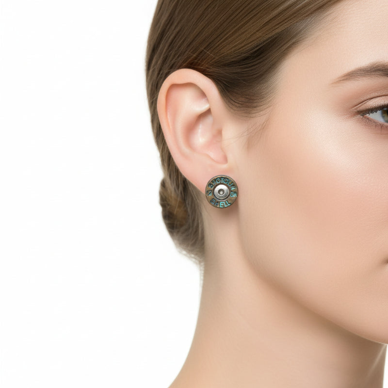 CLEARANCE! Rustic and bold for the cowgirl that wants to make a style statement! 12 GA shotgun shell caps with long posts in varying color combinations. Surgical Steel posts. Make your selection from the drop-down menu.