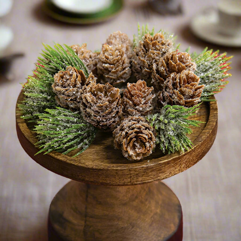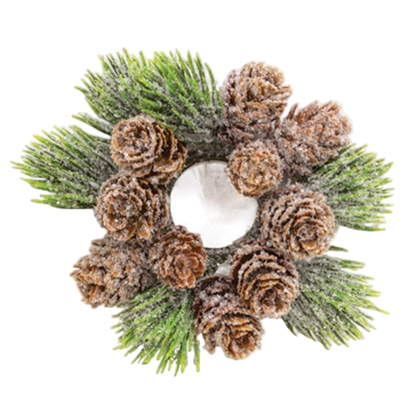 Icy Bristle Pine Boughs & Pinecones Candle Ring 1"