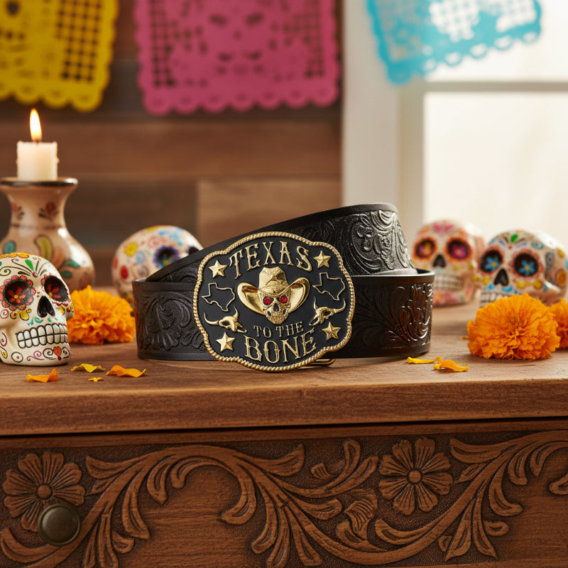 Texas To The Bone Skeleton Belt Buckle