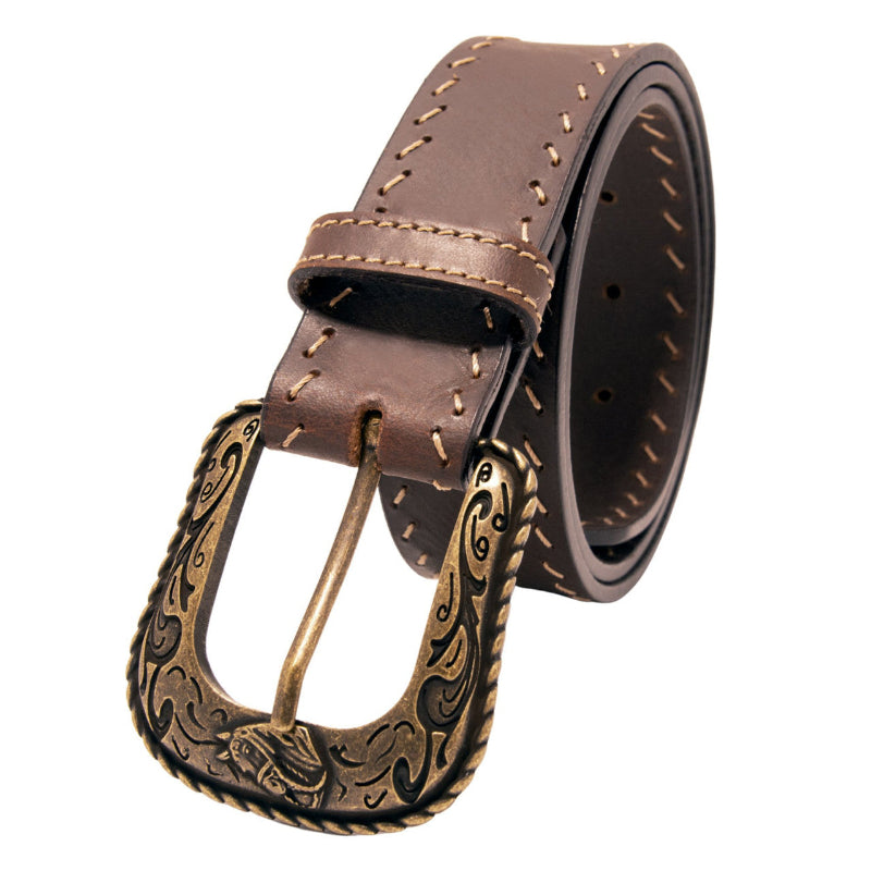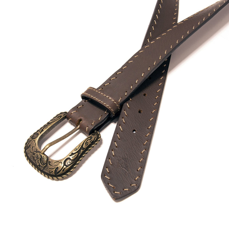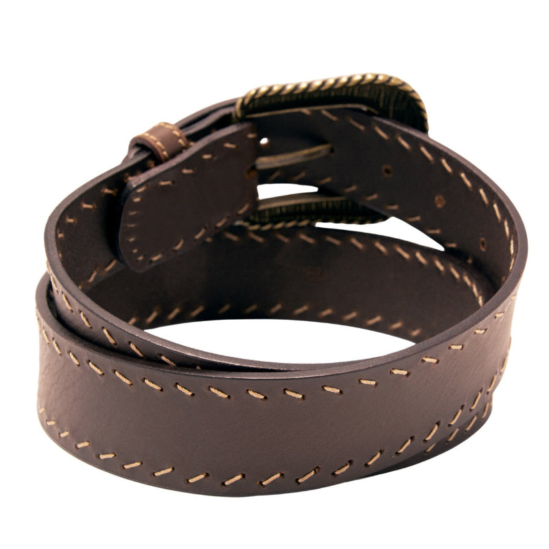 Western Diagonal Stitch Top Grain Brown Leather Belt