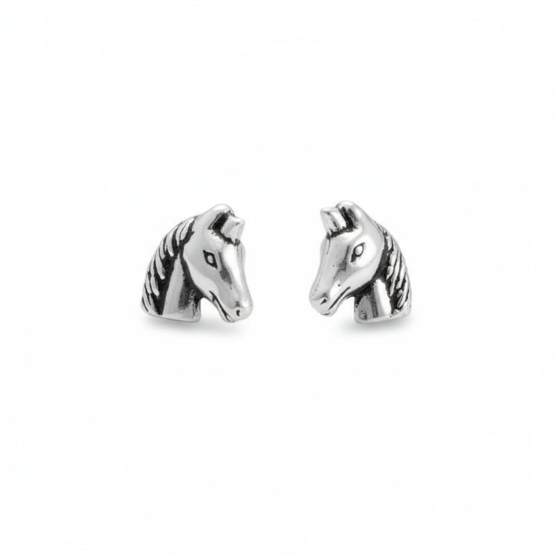 Perfect for Mom, daughter, sister, aunt, or your little girl. These are 8mm in an oxidized finish with dark details in the eyes, mouth, and mane. All silver with silver backs. .925 Sterling Silver