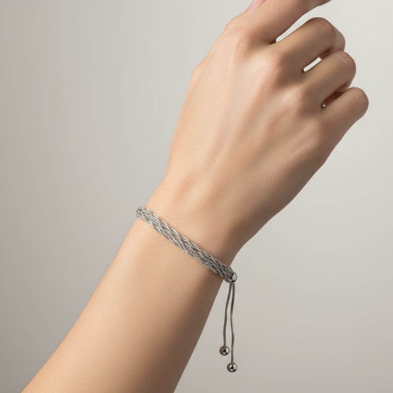 Adjustable rhodium plated (deters scratches) sterling silver dream catcher friendship bolo bracelet. The hoop measures 15mm and each feather measures 5.1mm x 21.2mm on a 1.2mm rounded box chain. Adjusts up to 10" using a 6mm stopper bead and finished with 4mm bead ends. Made in Italy. .925 Sterling Silver.