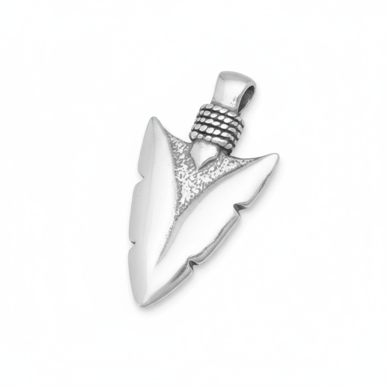 Double-sided sterling silver with a large bale to accommodate a heavier necklace chain, not included. Solid .925 Sterling Silver.