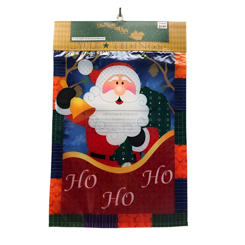 Jolly old Saint Nick is coming to town with a big bag of gifts on his sleigh. Brightly colored polyester with a wide rod pocket is perfect for decorating along your sidewalk or other outdoor area. Weatherproof and lightweight. Holder not included. Limited availability!