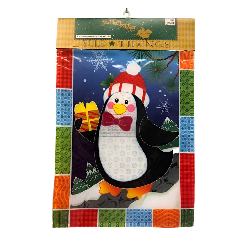 He's so happy it's Christmastime and he's skiing in to bring you a special gift! Colorful stained glass border against a starry midnight blue sky. Brightly colored polyester with a wide rod pocket is perfect for decorating along your sidewalk or other outdoor area. Weatherproof and lightweight. Holder not included. Limited availability!