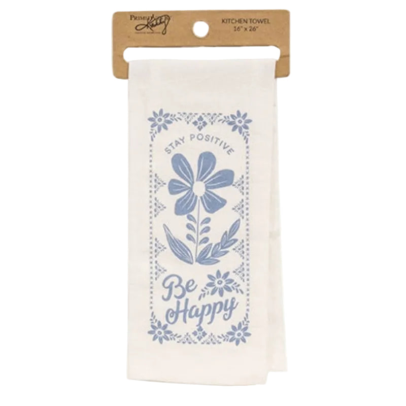 Both beautiful and practical, made from 100% washable, dryable white cotton with a delightful cornflower-blue flower design printed on one side along with text centrally. Includes a fabric loop on one corner that allows for easy drying on a towel bar, wall hook, or over the oven handle.