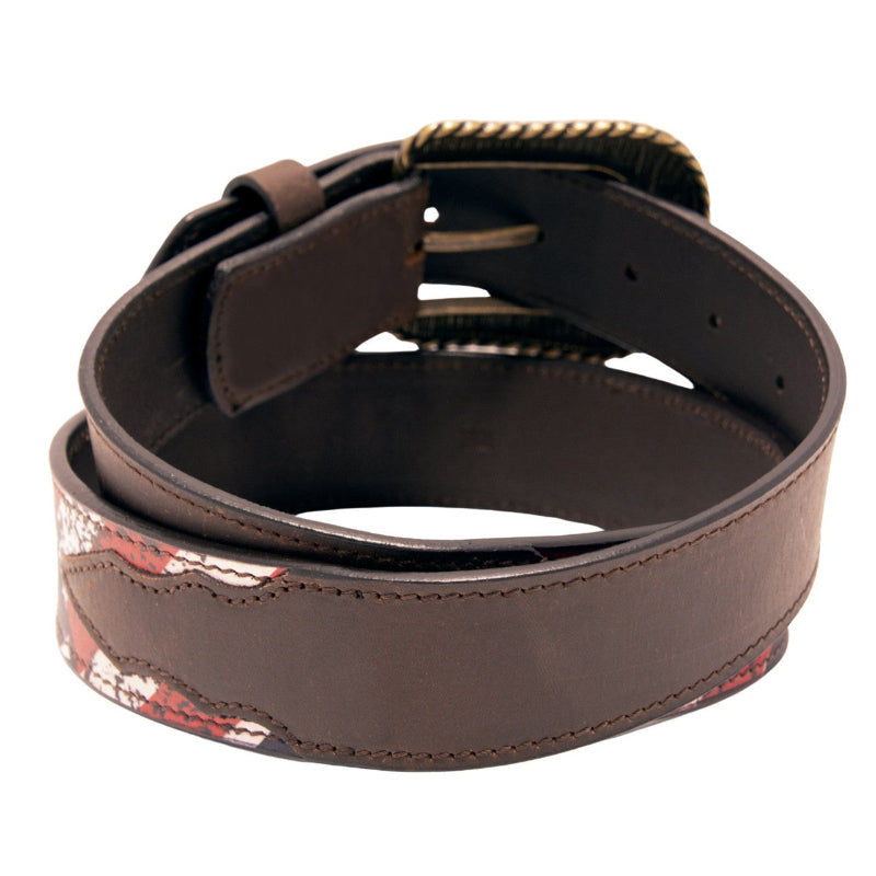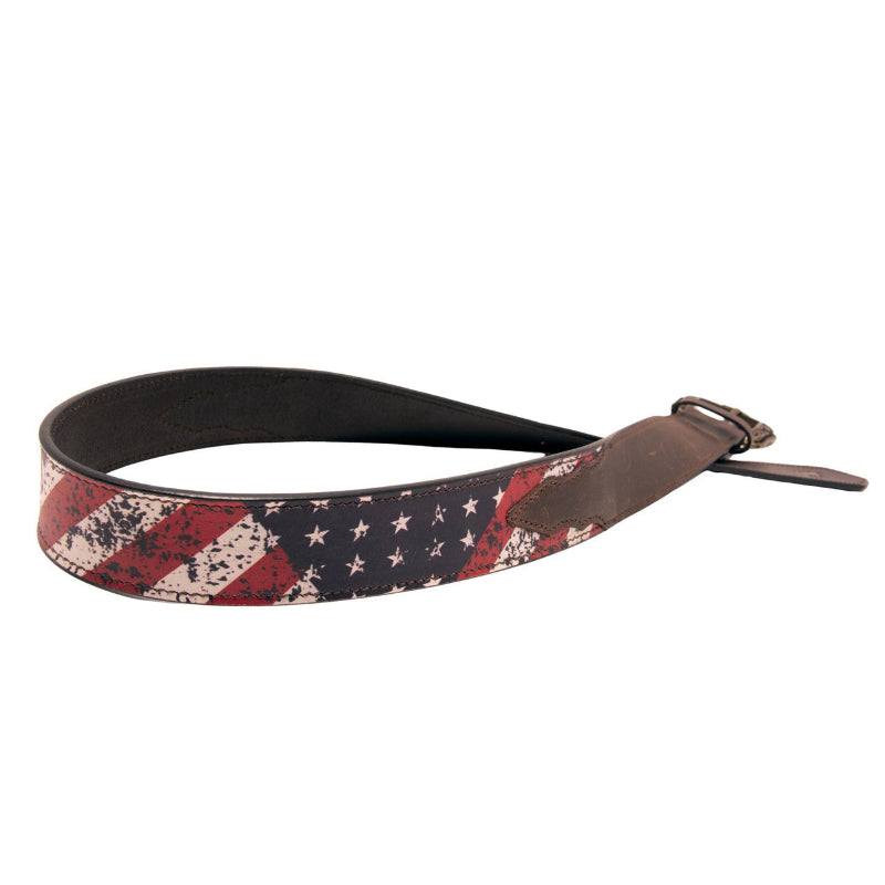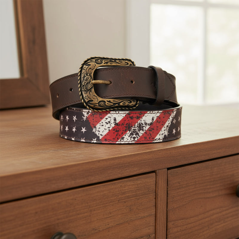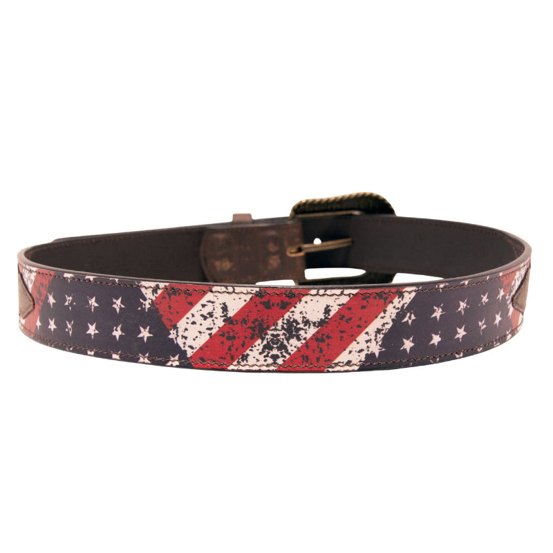 Features detailed clean, classic patriotic distressed flag design across the center back that adds extra interest to the classic cowboy or cowgirl styling as well as single stitching along the edges that adds strength and durability to the life of the item itself. Crafted from durable, high quality materials offering a smooth milk chocolate finish with eye-catching red, white, and blue stars and stripes detailing that's perfect for everyday jeans or for a dressy night on the town. This one has a unique, timeless style and character. Has a high finish goldtone removable buckle with a braided rope border, a sculpted horsehead with swirls and serifs design in addition to the classic pony stamped at the end. Finishes include: 1-1/2 inches wide and 1" between holes. Choose your size from the drop-down menu.