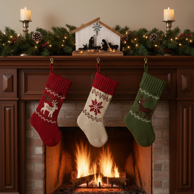 A decorative tabletop cutout that's perfect for the Christmas season. The shelf sitter is shaped as a barn, painted white with a natural-wood roof, and a galvanized metal star accent. The front features black silhouettes, and the flat freestanding bottom base includes moss detailing with soft lighting. Place on any flat horizontal surface, tabletop, or fireplace mantle during the holidays for an inspirational, spiritual memorial to the reason for the season. Requires 2-AAA batteries, not included.