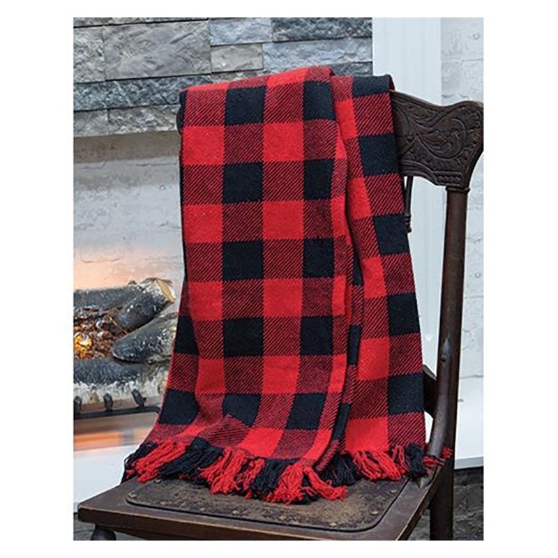 Soft, cuddly and has that cabin or ranch feel with its bold pattern and contrasting fringe. It's the perfect size for those chilly nights by the fire curled up with a good book or watching TV or over the foot of your bed to keep the toes warm. Fabric is 100% woven cotton. Wash separately, cold water, and hang to dry.